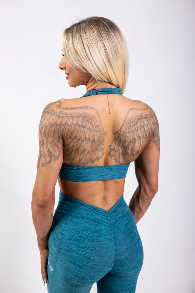 Top with thicker neck straps and a gathered front, which nicely emphasizes the shape of the bust. There are removable inserts inside.