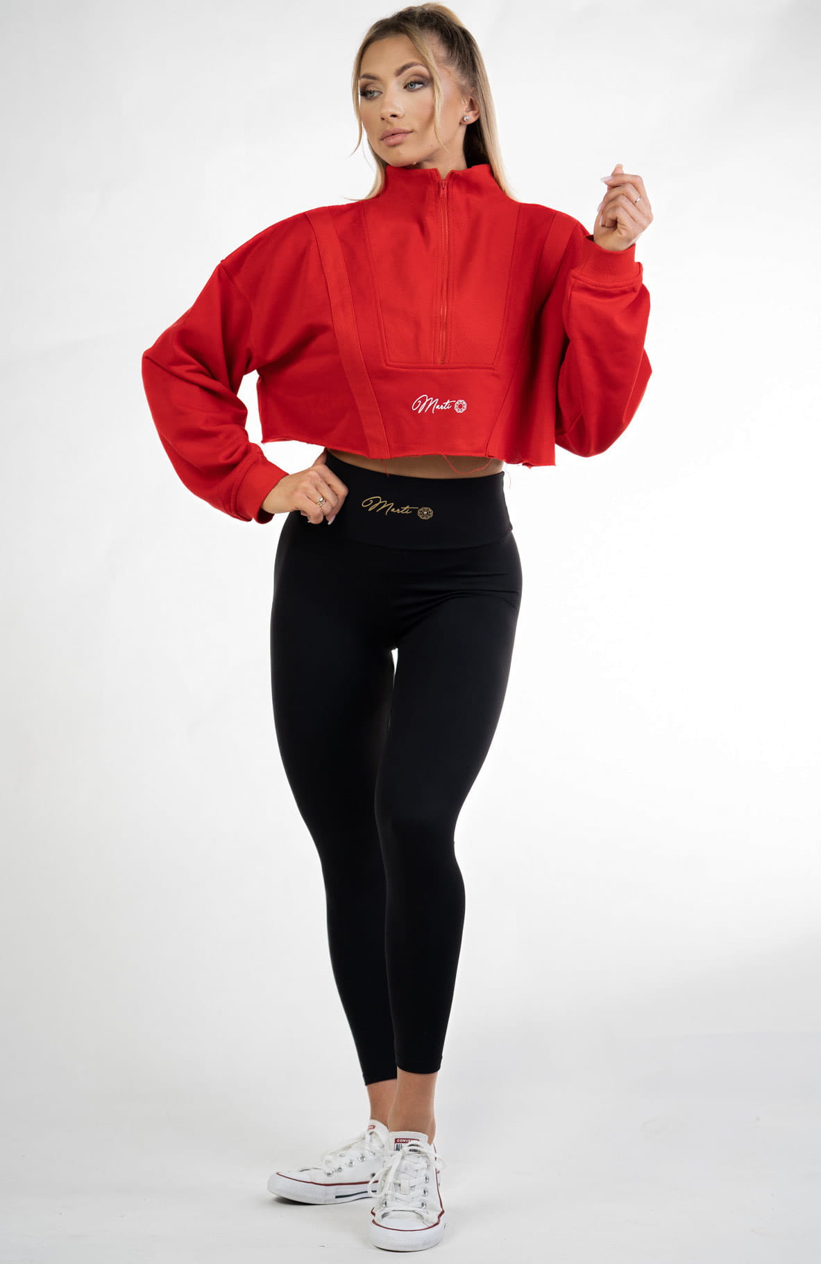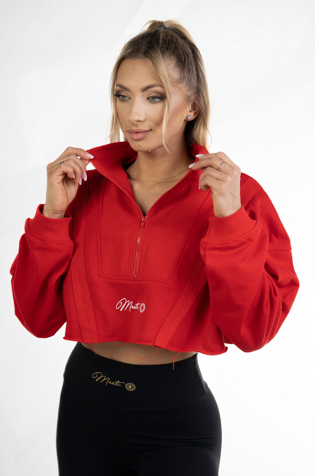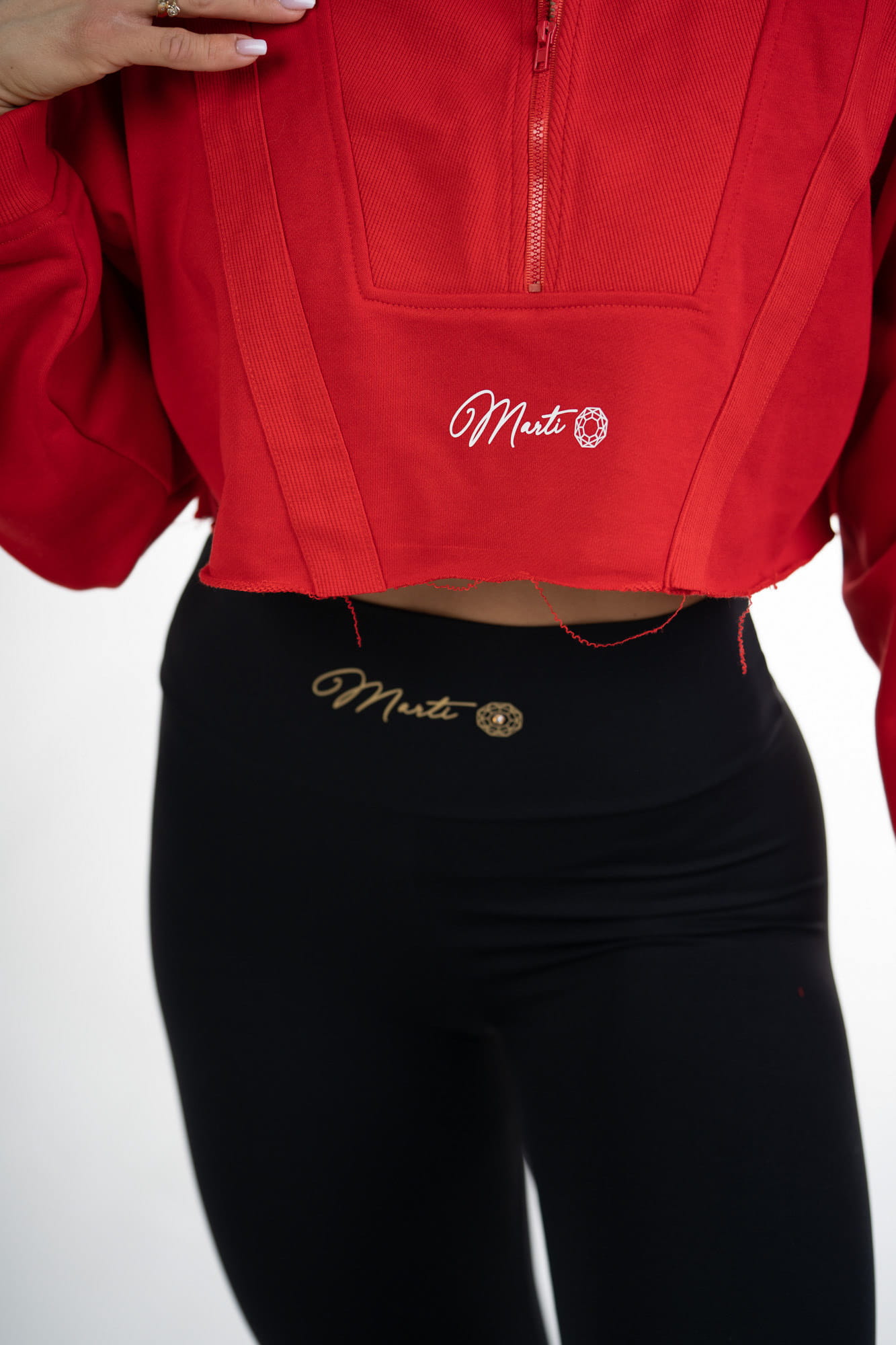 A loose sweatshirt with a zipper, fashionable stand-up collar and a white Marti logo.