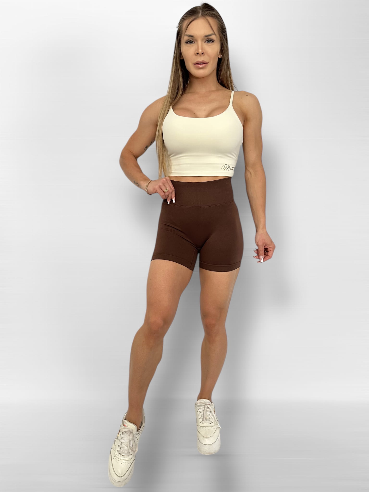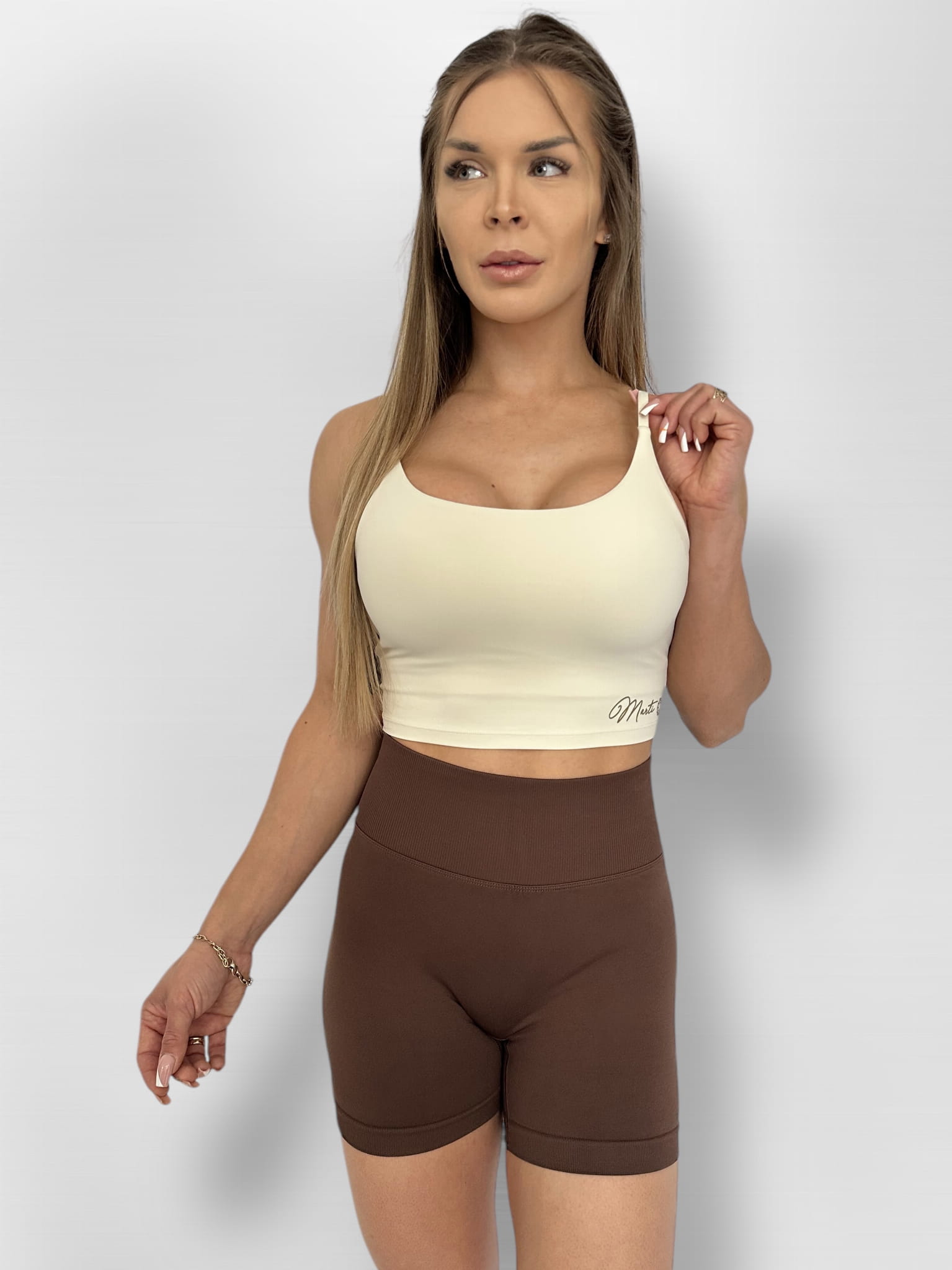 Push-up shorts have been designed with a wrinkling insert between the buttocks, because of this they are beautifully emphasized, and the back of the waist is decorated with the "Marti" logo with a shiny crystal.