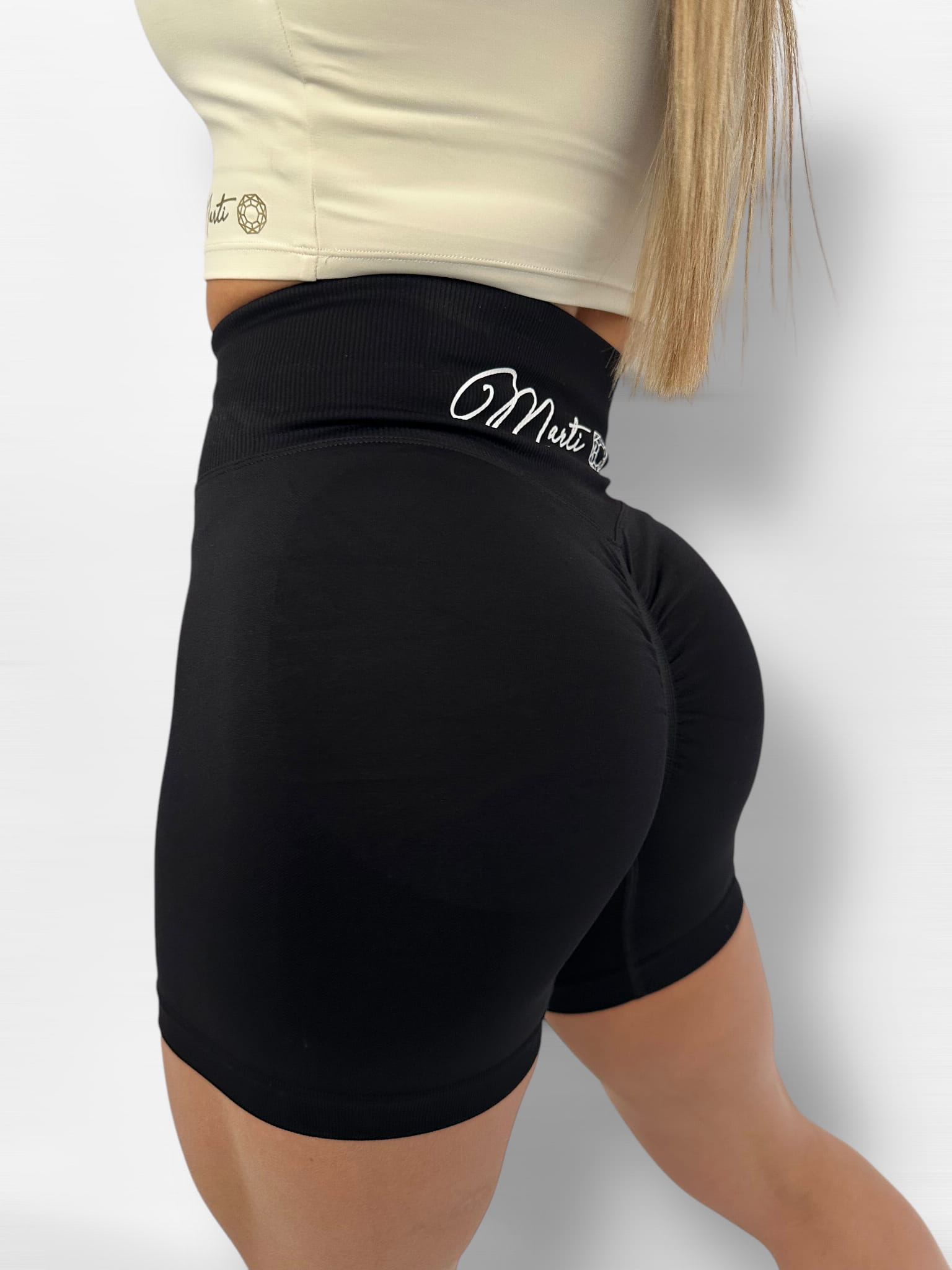 Push-up shorts have been designed with a wrinkling insert between the buttocks, because of this they are beautifully emphasized, and the back of the waist is decorated with the "Marti" logo with a shiny crystal.